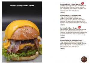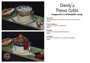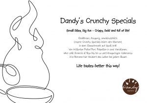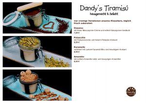 „Entdecke unser kreatives Menü – handgemacht mit besten Zutaten, inspiriert von italienischer Leidenschaft und serviert mit einem Hauch Dandy-Charme.“